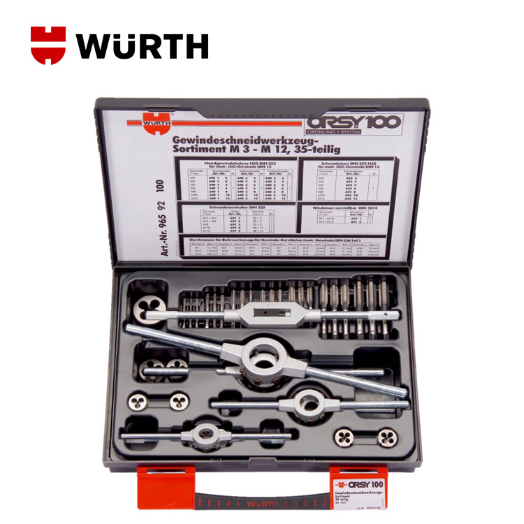 內含:M3、M4、M5、M6、M8、M10、M12 的錐頭絲錐各 1 個M3、M4、M5、M6、M8、M10、M12 的二錐各 1 個M3、M4、M5、M6、M8、M10、M12 的三錐各 1 個M3、M4、M5、M6、M8、M10、M12 的板牙各 1 個20 x 5、20 x 7、25 x 9、30 x 11、38 x 14 的板牙絞手各 1 個1 號和 2 號絲錐板手各 1 個