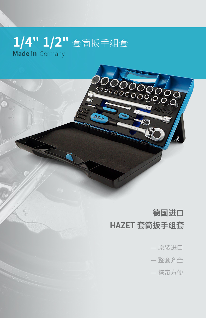 HAZET德國進(jìn)口小飛大飛工具組套棘輪扳手套筒汽修工具套裝