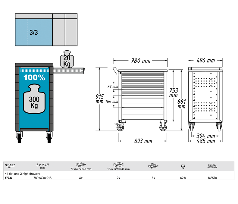 德國(guó)HAZET工具車套裝6抽屜多功能維修推車汽車間工具柜移動(dòng)汽修柜