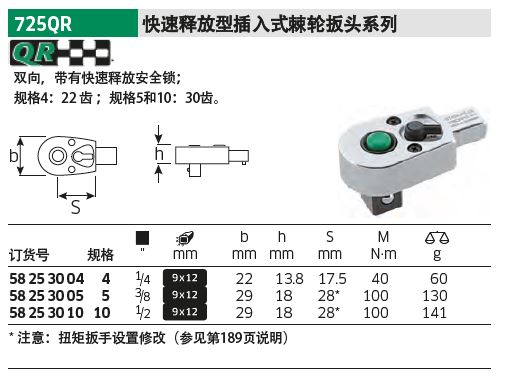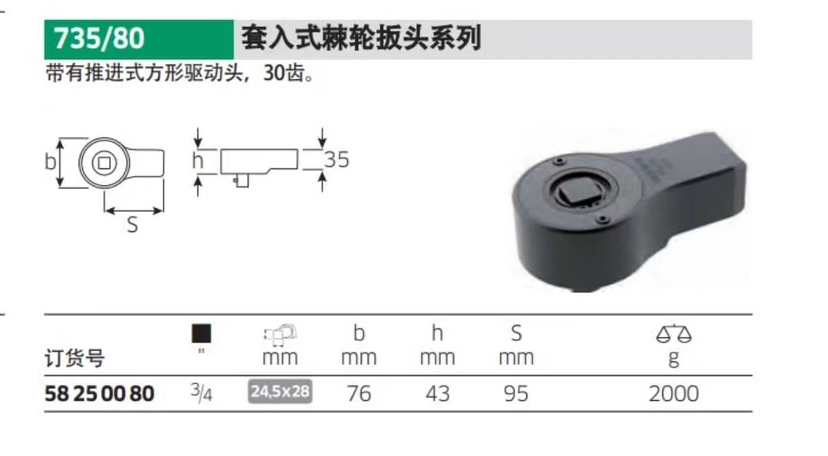 735/80國原裝STAHLWILLE達(dá)威力725扭力扳手頭 插入式棘輪頭 58250080